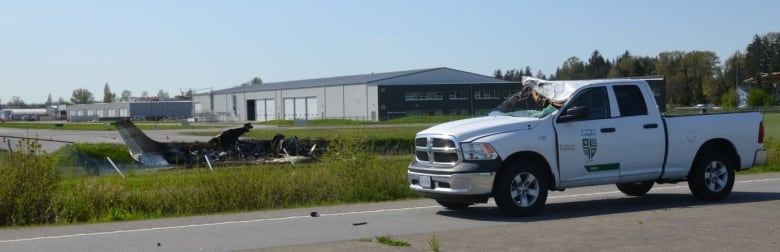Three people, including the driver of a pickup truck, were hospitalized after an unusual accident in Western Canada on Tuesday. The Cessna 182’s landing gear clipped the driver’s side windshield as it was landing at Langley Regional Airport, about 30 miles east of Vancouver. The truck, owned by the local municipality, was on a public road that borders the airport.