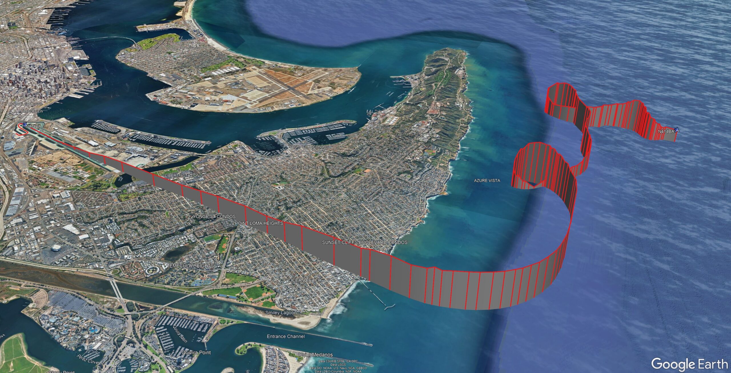 The aircraft took off from Runway 27 at SAN at 12:25 (19:25 UTC) on a flight to Phoenix-Sky Harbor International Airport, Arizona (PHX). After receiving instructions to turn to a heading of 180 after departure, the pilot radioed that they “struggled to maintain heading and altitude,” the narrative in the Aviation Safety Network said. “ADS-B data show that the aircraft entered a descending left turn, losing 1900 feet in 13 seconds. The aircraft began to climb again, but ADS-B data show an erratic altitude and heading until the moment the aircraft impacted the surface of the water, six minutes after it had commenced the takeoff roll.” It was overcast with light winds and a temperature of 66 degrees and dew point of 59 at the time of the crash. Patchy fog had been forecast for the area but it’s not clear if that fog had developed.
