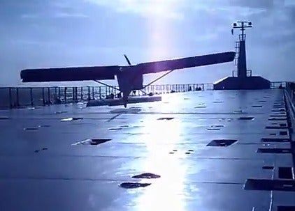 The deck of a cargo ship in the English Channel became a landing site recently for the pilot of a Foxbat Xtreme STOL airplane. The landing, caught on camera from several angles, was a carefully planned stunt by Dutch pilot Jaap Rademaker. “The ship was sailing at 9 knots speed over ground, the true windspeed was 14 knots, just about the full flap stall speed with just myself in the plane and full long-range fuel tanks,” Rademaker wrote at his YouTube site. “What is misleading is that control is perfect at several meters above the deck, but as soon as you get a meter or two above the deck to land, 1) there is curl-over turbulence coming off the bow and sides, 2) you have only some visual reference, like the mast in front. I won’t do it again.” Rademaker took off safely, but only with help from crewmembers who held the airplane struts steady while he powered up, because the tires were slipping on the deck.