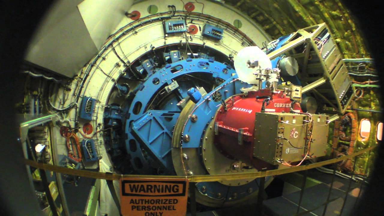One of the most impressive physical aspects of the aircraft is that its massive pressure bulkhead had to be moved forward and equipped with a special through bearing that kept the telescope properly oriented. Because it has to be kept cold and can’t be enclosed, NASA engineers had to figure out how to design and build a massive exterior door outside the pressure vessel and to channel air around the opening to avoid turbulence and cavitation. The video report explains how this was achieved.