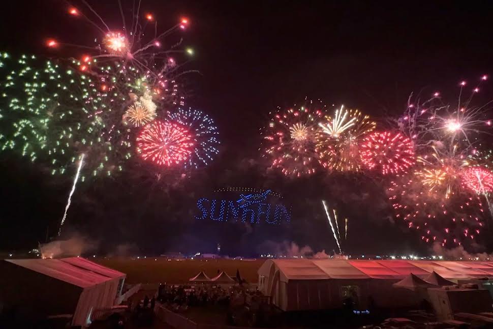 The Pyro Musical closed the night airshow with fireworks, drones, and Nate Hammond