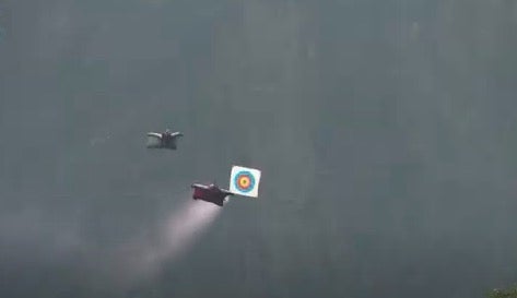 • The content features a video showcasing a BASE jump involving a precision maneuver through a specific "target," such as a hula hoop.