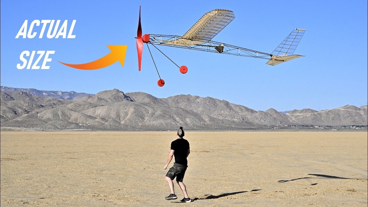 - Scaling up standard rubber-band-powered airplanes to achieve a massive wingspan is far more difficult than expected, even with modern materials and techniques.